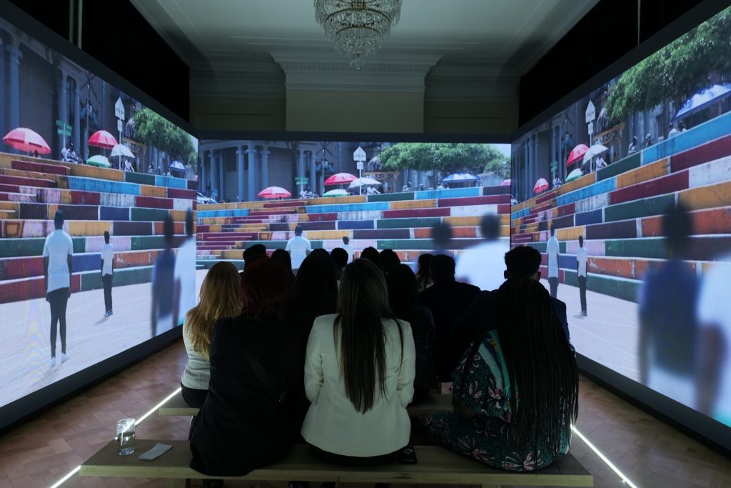 La sala central de la exposición es Llegando por el Atrato; Una recreación audiovisual del recorrido hacia Quibdó por el río Atrato, abordo de una tradicional “panga”. Mientras una voz en off relata el contexto que rodea los homicidios de más de 800 NNAJ en los últimos 9 años